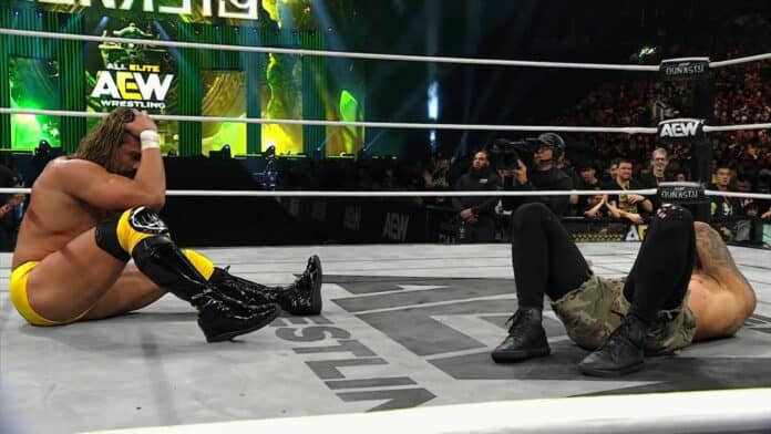 It was all Andrade in the early going. Andrade even took a photo at ringside with a model. They brawled into the crowd. Allin hit a drop kick and landed badly on the steps.Allin reversed a slam off the top rope and landed in the crossface, but Andrade got to the bottom rope. Allin with a drop kick off the top rope to the floor on Andrade. Andrade with a suplex over the top rope to the floor. Andrade took off his pants and Allin caught him with a DDT then went for a coffin drop and hit it for 2. Andrade caught him with a head kick for 2. Allin rolled him up for a shock finish.