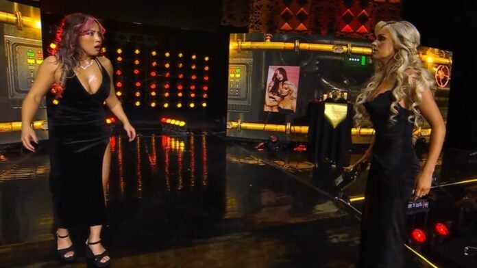 May cut a promo about how it’s been a hard few months, but there is not one alive that can touch her. They proceeded to dance and tried to hit Mina with a champagne bottle. Mina speared her off the stage through a table.