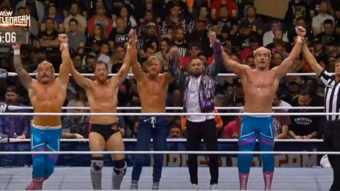 The Outrunners, Orange Cassidy and Kyle O’Reilly vs. Dark Order and the Premiere Athletes in an eight-man tag took place at the AEW WrestleDream pay-per-view event from the Tacoma Dome in Tacoma, WA on Saturday night.