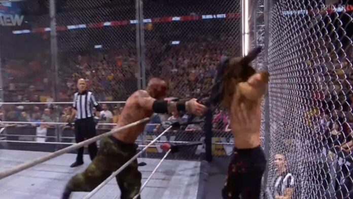 AEW held the Blood & Guts Match for the fourth straight year when Team AEW (Swerve Strickland, Mark Briscoe, Darby Allin, and The Acclaimed) faced off with The Elite (The Young Bucks, Kazuchika Okada, Jack Perry, and Hangman Page) on Wednesday’s AEW Dynamite from Bridgestone Arena in Nashville, Tennessee.