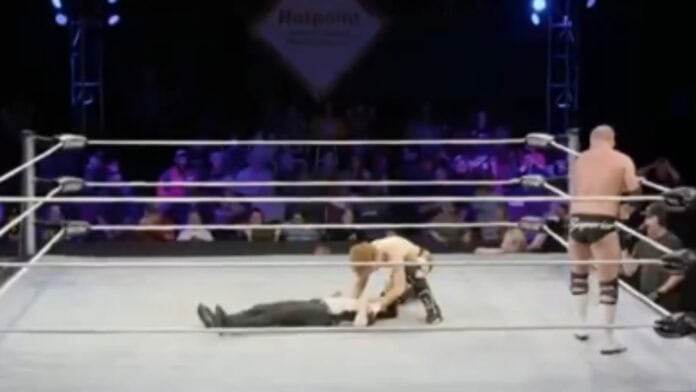 During the multi-man main event, OVW Rush Champion Brendan Balling came off the top rope going for a flying forearm on heel Tony Evans. Evans pulled referee Dallas Edwards into the path of the move, and Balling connected with Edwards, who struck his head on the mat and was knocked out. Edwards’ body began seizing and going into convulsions.