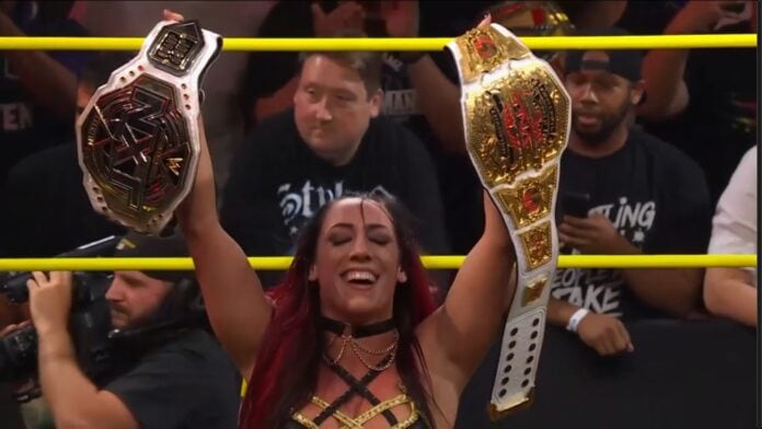 History was made at tonight’s TNA Slammiversary pay-per-view, as NXT Women’s Champion Jacy Jayne defeated Masha Slamovich to capture the TNA Knockouts World Championship in a “Winner Take All” match. With the victory, Jayne will now carry the top women’s titles for both the NXT and TNA brands simultaneously.