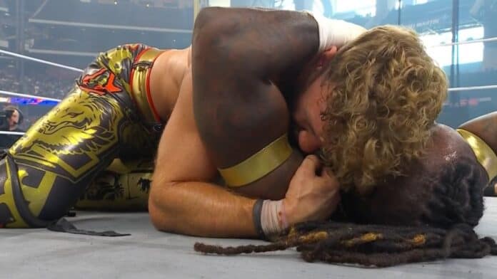 The babyfaces took charge in the opening minutes of the contest. The Young Bucks laid them out on the floor. The Bucks were getting heel heat by playing mind games with Swerve while beating down Ospreay. Strickland got the hot tag and he and Ospreay hit an outside dive. Will and Swerve with a double big boot to Swerve. Everybody traded superkicks before The Bucks hit canadian deosterys before Ospreay and Strickland took them out in an incredible sequence. Will and Swerve with the styles clash to both of them for 2. Swerve and Ospreay with a stomp and storm breaker to Matt. Prince Nana got superkicked by Nick. Matt with a low blow to Ospreay as he distracted the referee. The Bucks with the TK driver on the floor to Swerve. The Bucks with the bang for your buck to Ospreay for 2. The Bucks with the EVP trigger for 2. Will accidentally hit Swerve with the hidden blade, allowing the Bucks to hit the EVP trigger for 2. Swerve took some superkicks to protect Ospreay before blocking the EVP trigger. Ospreay and Swerve hit a stomp into a tombstone to Nick for 2. Will with the hidden blade as Nick broke up the pin attempt. Ospreay and Swerve with the house call and hidden blade for the win.