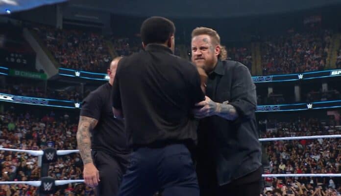 The August 1, 2025, episode of WWE SmackDown concluded with a physical altercation between the four participants of a scheduled SummerSlam tag team match: Logan Paul, Drew McIntyre, Randy Orton, and the musical artist Jelly Roll. The program ended after Orton and Jelly Roll attacked members of the security staff in the ring.