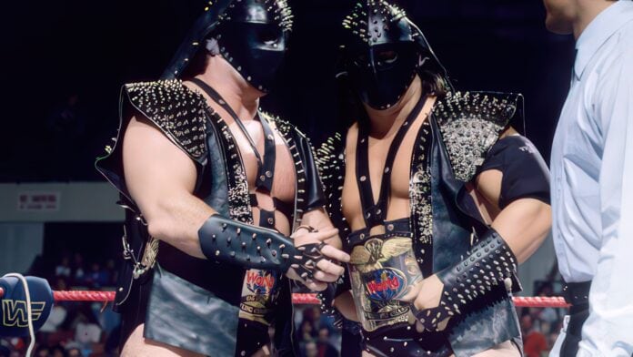 In late 1990, at the height of their feud with The Legion of Doom, Demolition briefly underwent a jarring cosmetic change, trading their signature face paint for black masks or hoods. On their “DEMOPOD” podcast, Ax and Smash spoke about the infamous creative decision, stating their belief that it was a deliberate attempt by WWE management to sabotage their act and elevate the newly arrived Legion of Doom.
