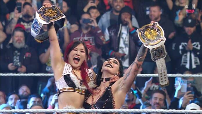 Iyo Sky and Rhea Ripley have ascended to the top of the women’s tag team division. In the opening contest of Monday Night Raw, the powerhouse duo defeated The Kabuki Warriors (Asuka and Kairi Sane) to become the new WWE Women’s Tag Team Champions.