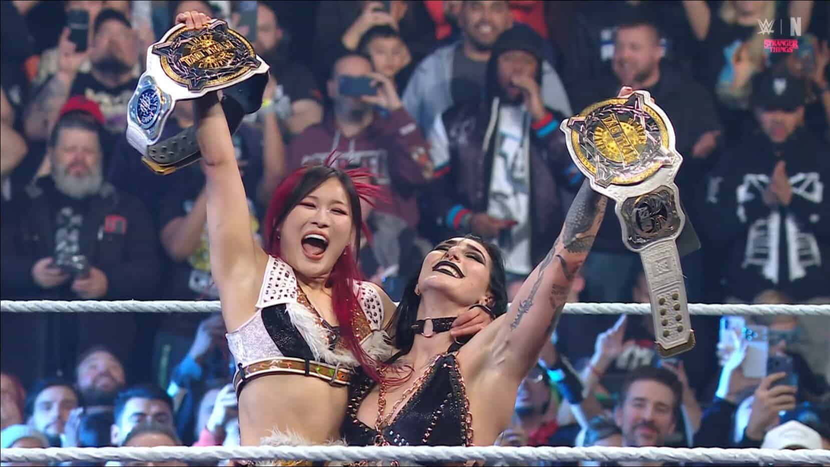 The closing moments saw the challengers execute a seamless finish. Sky connected with running double knees on Asuka, allowing Ripley to tag in. As Ripley hit the Riptide on Asuka for the pinfall, Sky simultaneously wiped out Sane at ringside with a suicide dive to ensure no interference could break up the count.