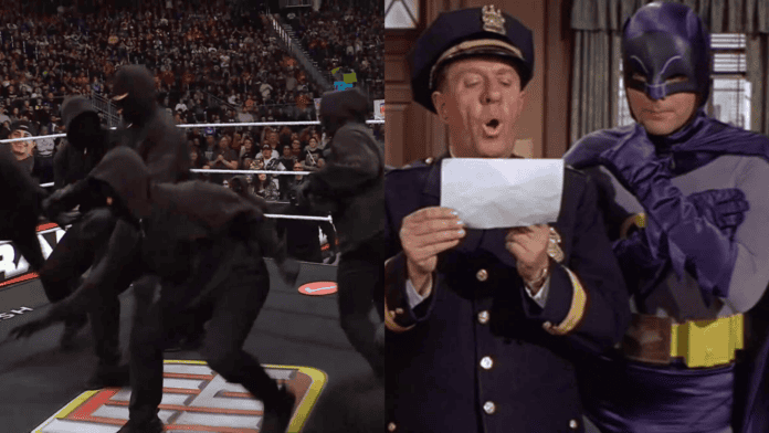 Co-host Sean Oliver described it as “a lemur’s mating dance” before settling on “jazz improv with some choreography.” Nash agreed with the comparison to the henchmen from the 1966 Batman series. “I felt a ’66 vibe when all the hooded guys were out there,” he said. “It was always those that crew of guys that had the bowlers on or something. These are perfect, the all black hooded guys.”