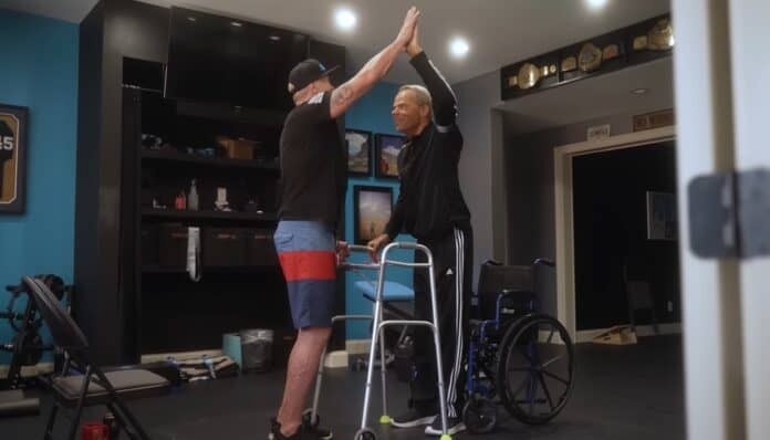 A new video released on the DDP Yoga YouTube channel has provided a significant and emotional update on the health of WWE Hall of Famer Lex Luger, showing “The Total Package” taking steps unassisted for the first time in years. The video highlights Luger’s incredible progress in his long recovery from a spinal cord injury, with the help of Diamond Dallas Page and a new assistive walking device.