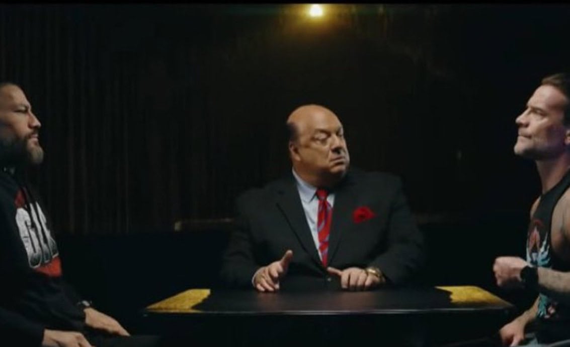 Tonight on Friday Night SmackDown SmackDown, WWE aired a cinematic segment featuring Paul Heyman, Roman Reigns, and CM Punk. The tense encounter was set in a dimly lit room.