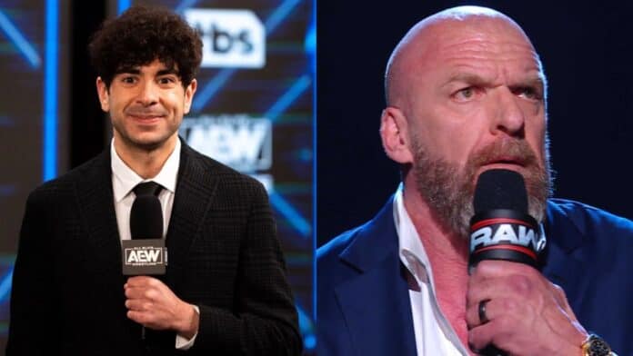 AEW President Tony Khan responded to a social media post today (scroll down to see the post) involving artificial intelligence and his ongoing rivalry with WWE. NoDQ.com’s Aaron Rift prompted the AI chatbot Grok to “remove the worst wrestling booker” from an image featuring Khan and WWE Chief Content Officer Paul “Triple H” Levesque.