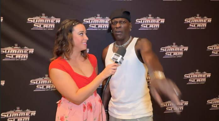 In an exclusive interview with Emily Mae of WrestlingNews.co during WWE SummerSlam weekend, the returning Ron Killings, also known as R-Truth, displayed a stark split personality regarding John Cena (scroll down to watch the interview). While his fun-loving R-Truth persona praised Cena as his “childhood hero,” the new, intensely serious Ron Killings persona stated “I don’t give a damn about John Cena” and issued a direct threat to the legend.