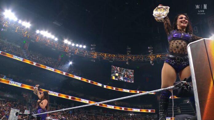 Women’s Tag Team Champions Raquel Rodriguez & Roxanne Perez vs. Charlotte Flair & Alexa Bliss vs. Asuka & Kairi Sane vs. Sol Ruca & Zaria took place at the WWE Evolution Premium Live Event from the State Farm Arena in Atlanta, GA.